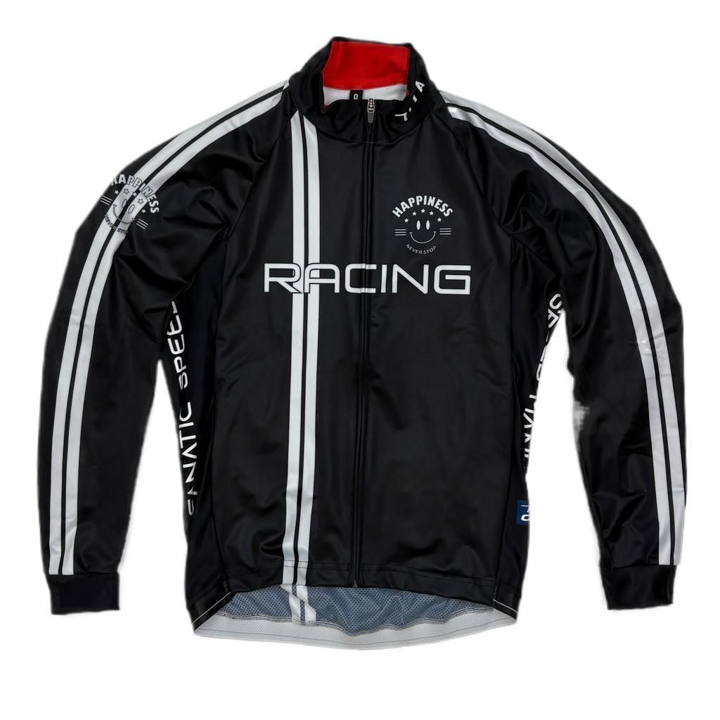 前面がウィンドプルーフ、背中部分は裏フリースのジャージ素材を使用した、ジャケットとジャージの中間に位置する防風保温ギア。