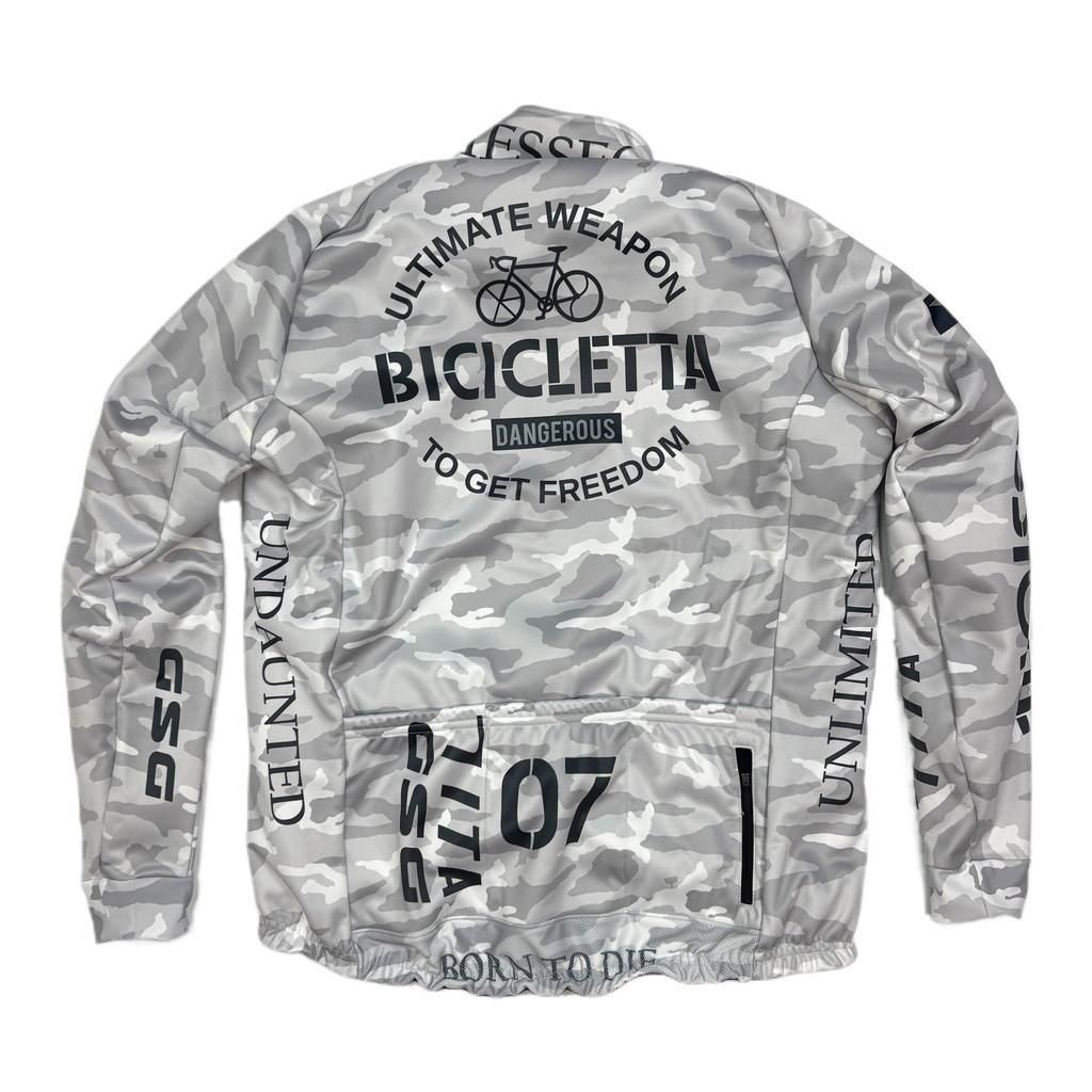 7ITA定番アーミースタイルの防風保温サイクルジャケット。今回のロゴは自由を得る為の究極の武器=自転車をモチーフにしました。