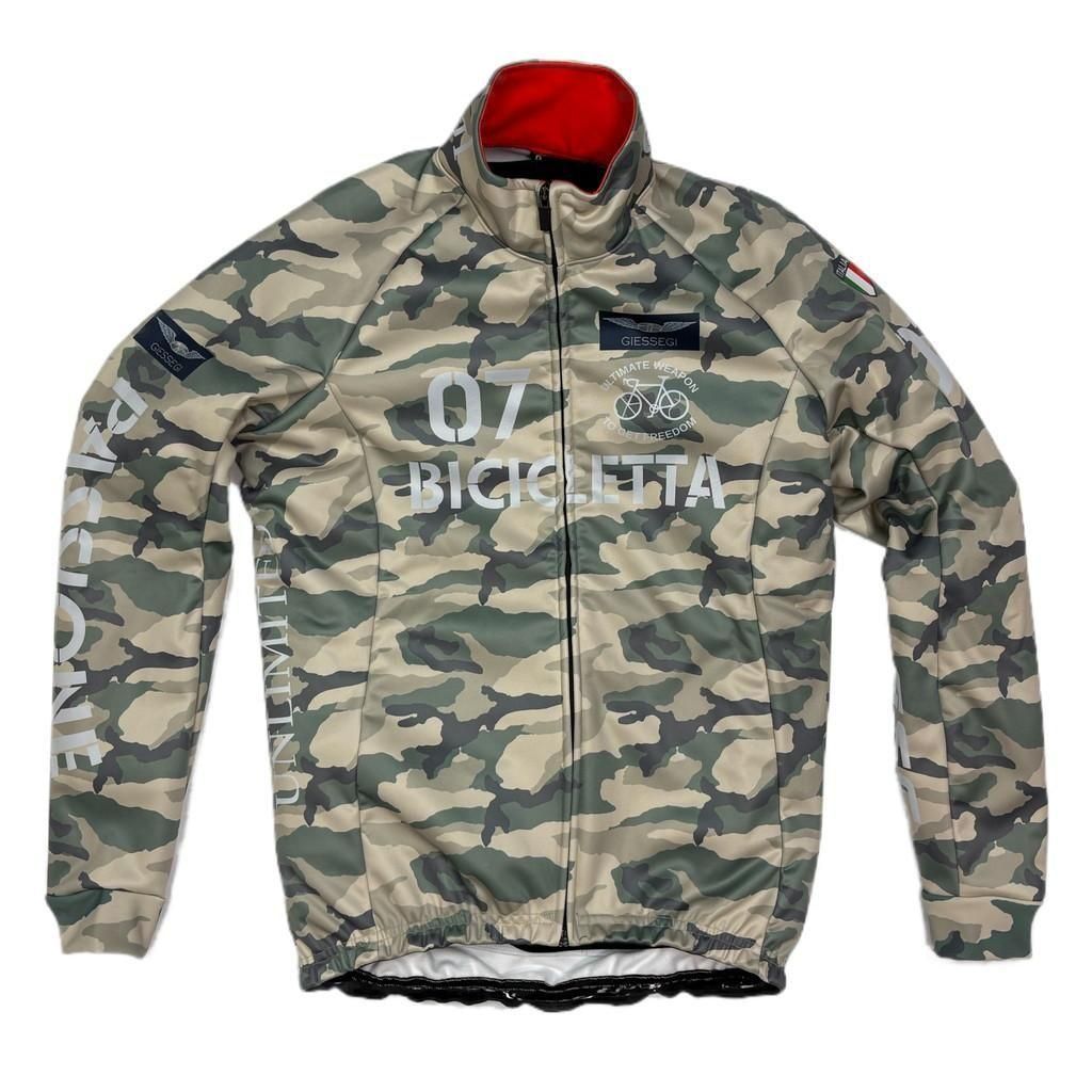 7ITA定番アーミースタイルの防風保温サイクルジャケット。今回のロゴは自由を得る為の究極の武器=自転車をモチーフにしました。